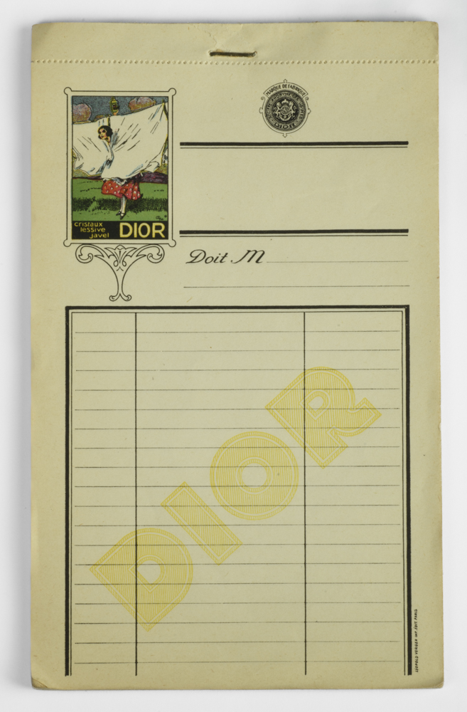 Louis Dior, arrière-grand-père de Christian Dior, pose la première pierre des usines familiales en 1832. La société se développe avec les générations suivantes en produisant engrais, lessives et eau de javel, jusqu’à sa faillite dans les années 30. Au cours de son histoire, elle a utilisé divers supports publicitaires pour promouvoir ses activités. Le Musée a ainsi acquis un briquet arborant la forme des bouteilles de javel, un porte-clé reprenant le logo historique des usines, des plaques d’impression ou encore un papier à en-tête daté des années 20-30.